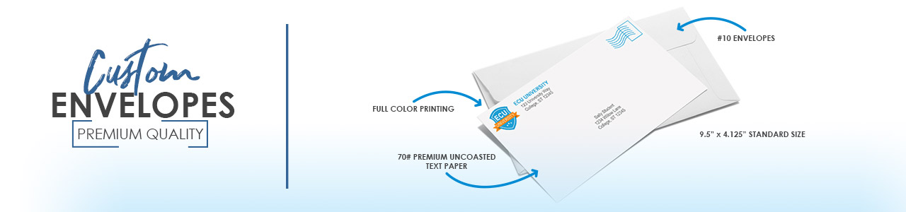 Matching envelopes for your letterhead. #10 Standard white envelopes full color printing on 70# premium uncoated text paper.