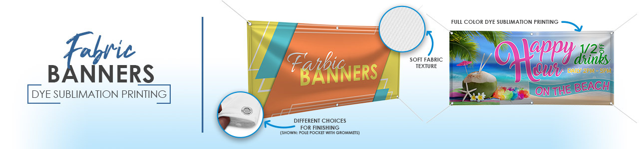 Soft, inviting look of real fabric makes these banners a great choice for interior applications. Dye sublimated prints that can be washed and will last a long time.