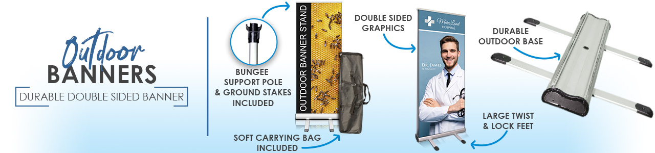 Are you looking for a quick and convenient way to showcase your business or event outdoors? Look no further than our outdoor durable retractable or pull up banner stand! This amazing displays are not only portable, but it's incredibly fast to set up. With just a few simple steps, you can create an instant display that will grab the attention of anyone passing by. And the best part? Your graphics will be printed on high quality and durable PET vinyl, ensuring that your message stays vibrant and eye-catching. Plus the outdoor banner stand includes a soft carrying case and ground stakes. So why wait? Get your hands on one of our durable outdoor retractable banner stands and start making a statement!