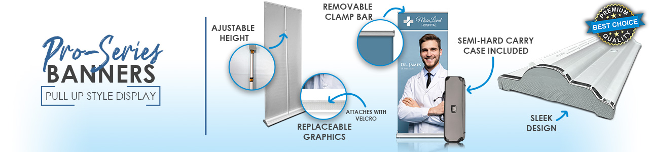 Retractable or Pull Up Banner stands are very portable and fast to set up. Create an instant display with your graphics printed on high quality and durable vinyl.