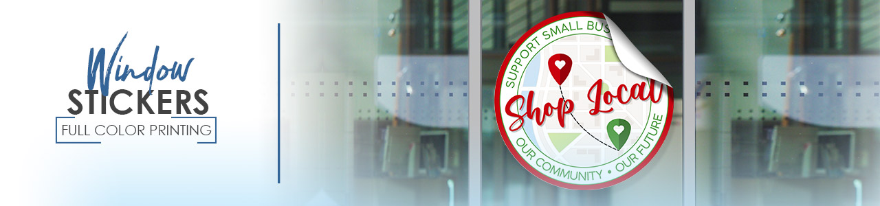 Window Stickers are custom printed on Adhesive Fabric. The Wall Signs can be mounted to any surface, re-positioned and reused all while retaining its adhesion and leaving no residue. They have a soft fabric finish and can be used indoors and outdoors. Great for schools, businesses, retail stores, home walls and more!